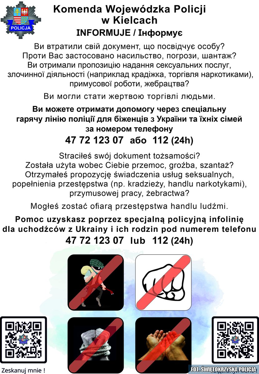 Pomoc uzyskasz poprzez specjalną policyjną infolinię dla uchodźców z Ukrainy i ich rodzin pod numerem telefonu